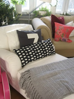 Tog ledigt måndag efter nyår och passade på att städa bort det som var kvar efter julen, skönt! Bäddade rent med våra nya Lexingtonsänglinnen(köpte två dubbelpåslakenset med örngott för 500 kr st i november på en outlet i Stockholm, helt sjukt billigt!), fick pallen med den omklädda dynan på plats oxå. Dynan har min mamma klätt om i elefanttyget från Svenskt Tenn och det blev riktigt bra i hallen. Hon sydde även en långkudde till min schäslong som matchar fint inne i vardagsrummet. Fick hem ett paket från HM oxå där jag hade beställt den grå pläden på bilden nedan. Det blir ju så mörkt när alla adventstjärnor försvinner så jag lade in en ljusslinga i vårt nya skåp i vardagsrummet och det blev genast lite mysigare där inne.